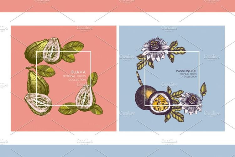 典型的热带水果植物背景纹理图案 Tropical Fruit