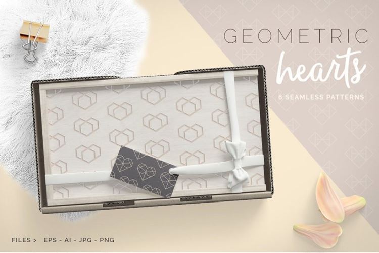 图穷联素材库 » 爱心几何无缝背景纹理 Geometric Hearts Pa