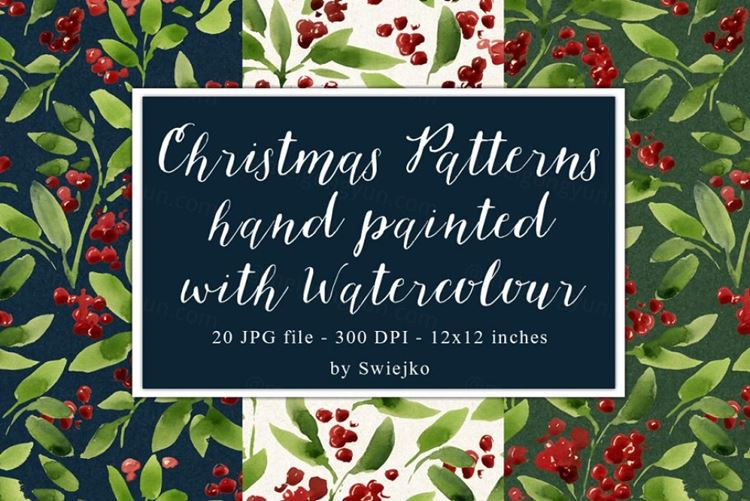 图穷联素材库 » 圣诞主题的水彩花卉背景纹理 Watercolor patte