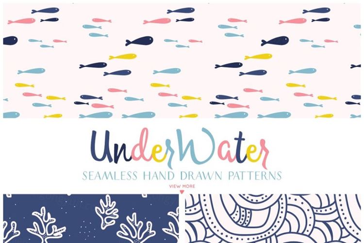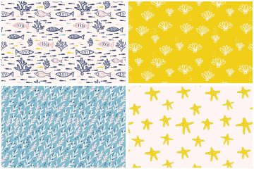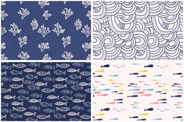 水下池塘元素图案集合 Underwater Pattern