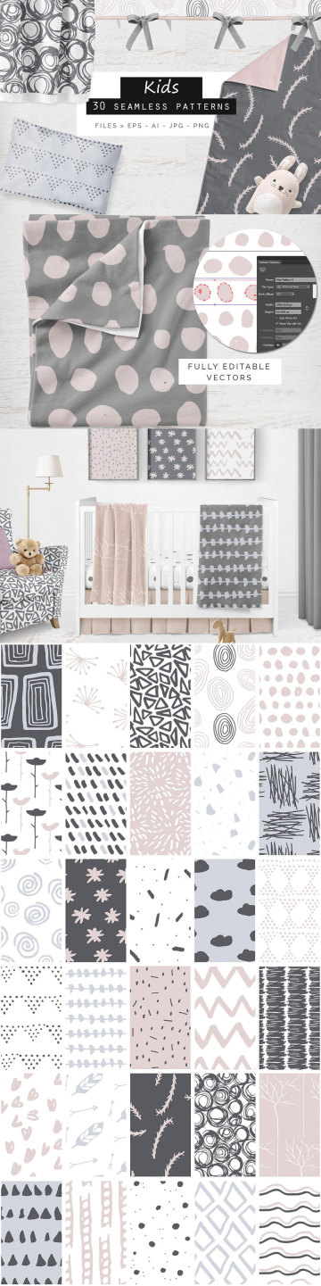 图穷联素材库 » 可爱的孩子无缝手绘背景纹理 Kids Hand Drawn