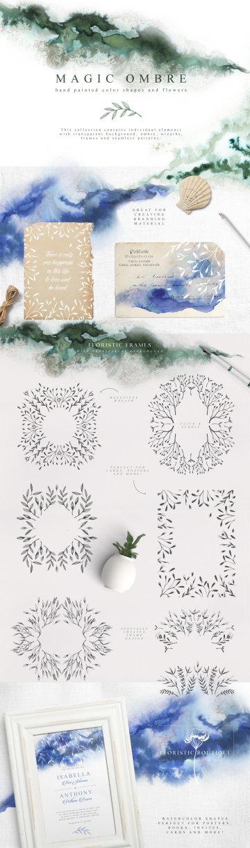 图穷联素材库 » 翡翠色调变手绘花纹图案素材包 Magic Ombre Col
