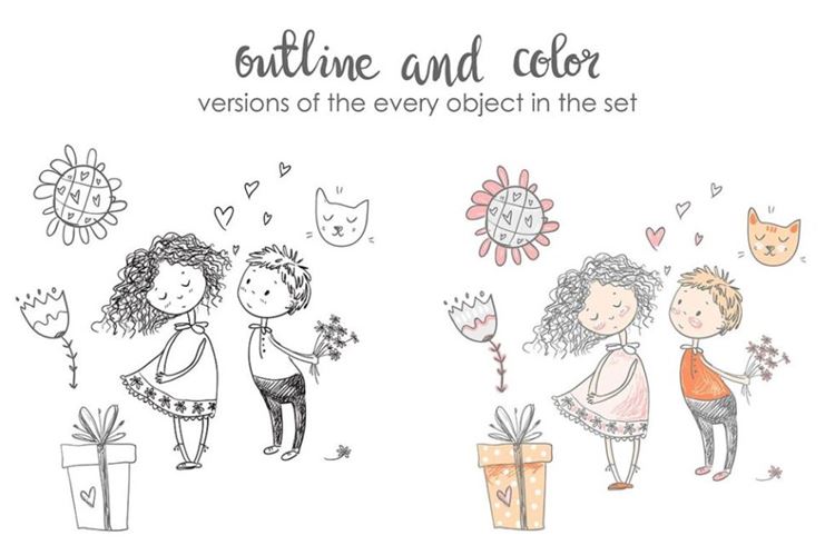 图穷联素材库 » 浪漫爱情主题卡通手绘素材 Graphic KIT