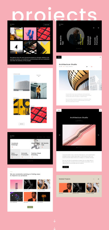 适合为工作室,代理商和任何创意专业人士创建网站的UI KITS