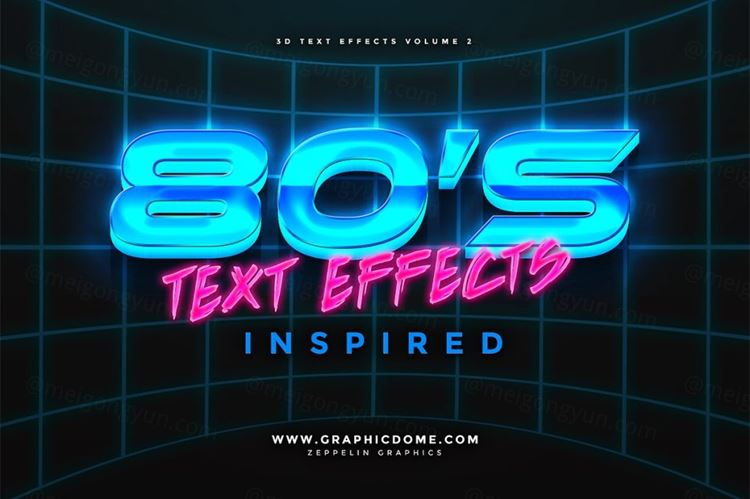 霓虹灯效果的PS字体图层特效样式 80s Text Effe