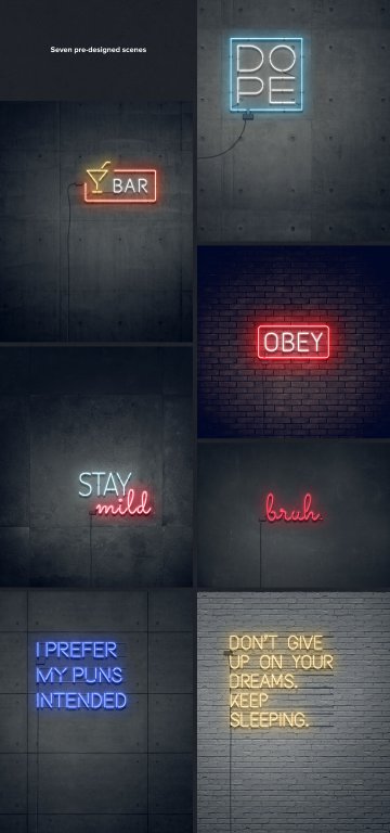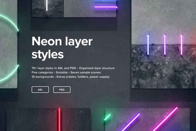 图穷联素材库 » 绚彩霓虹字效果PS图层样式Neon Layer Styles