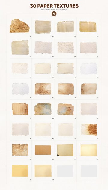 注意:在第二张图片中只显示了26张图片,因为这是我截屏时的数量,但之后又添加了4张。请放心,此包装中至少会有30种纸张纹理。