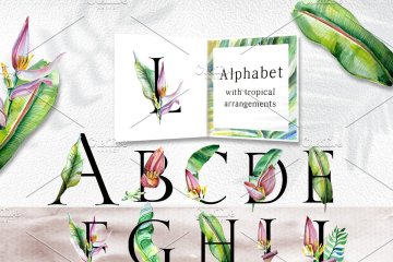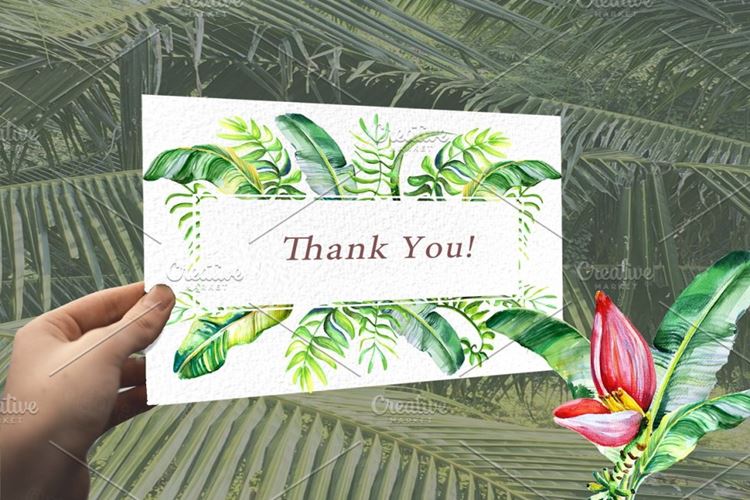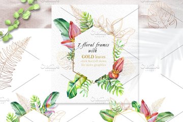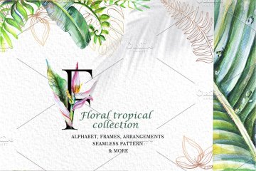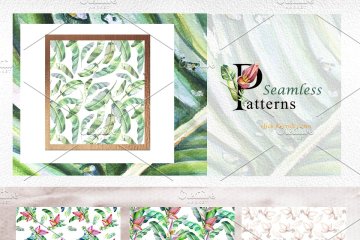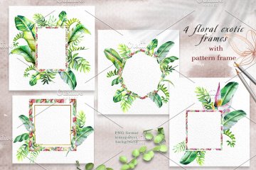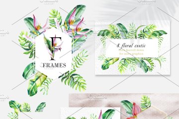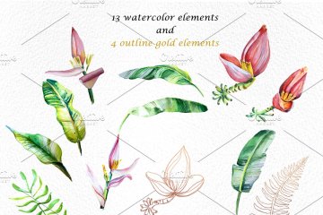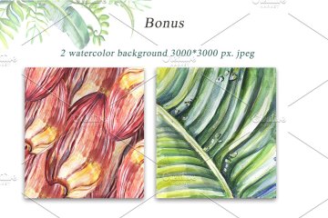 图穷联素材库 » 热带花卉绿色植物水彩插画合集