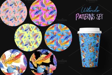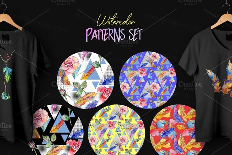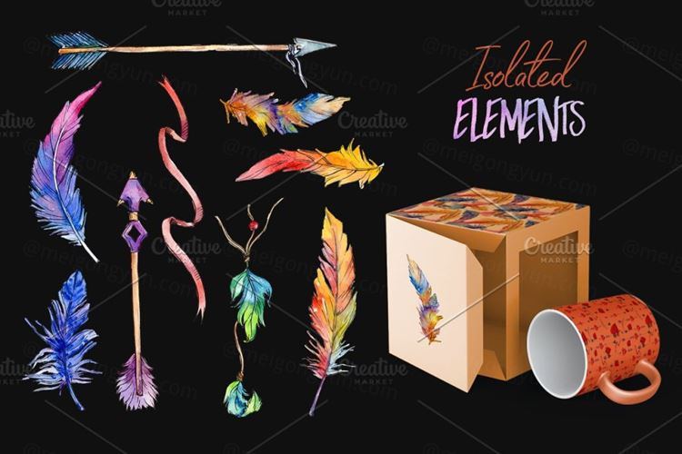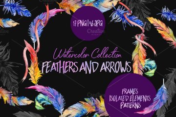 图穷联素材库 » 羽毛箭头水彩花卉插画背景设计