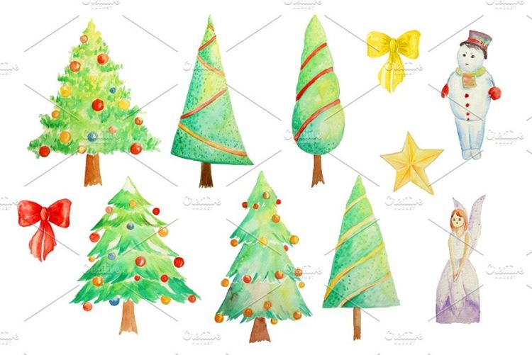 图穷联素材库 » 水彩圣诞节元素剪贴画 Watercolor Clipart