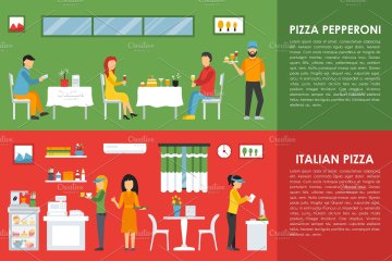 扁平化披萨元素插画 Pizzeria Flat Interi