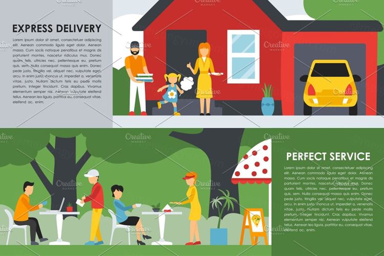 图穷联素材库 » 扁平化披萨元素插画 Pizzeria Flat Interi