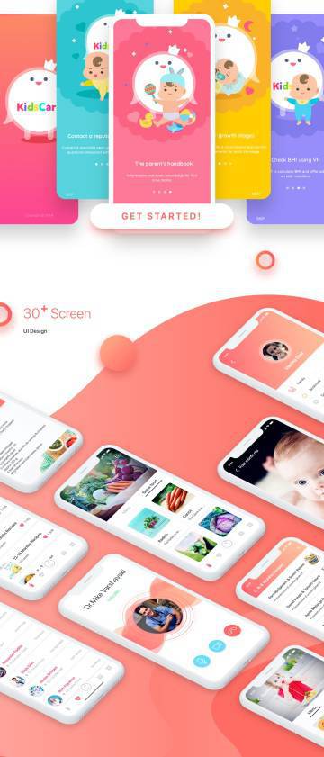 图穷联素材库 » 幼儿园儿童健康跟踪管理系统APP UI工具包 KidsCare UI Kit