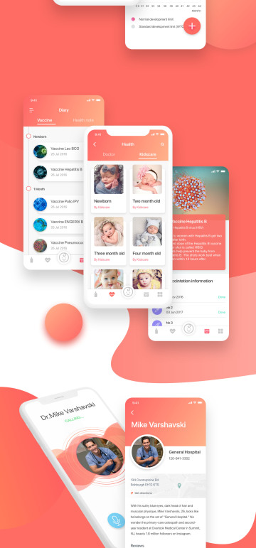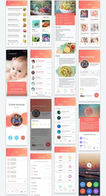 美丽的UI套件与多彩的设计。此UI工具包包括演练,登录,注册,联系医生,扫描VR,营养,健康说明,疫苗,配置文件屏幕等等。