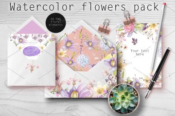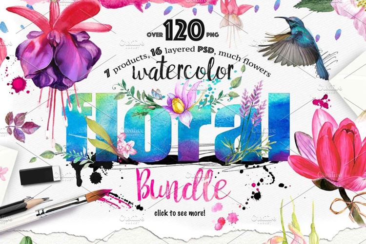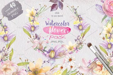 图穷联素材库 » 水彩花卉素材合集 Over 120PNG watercolo