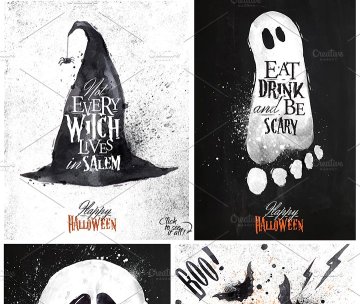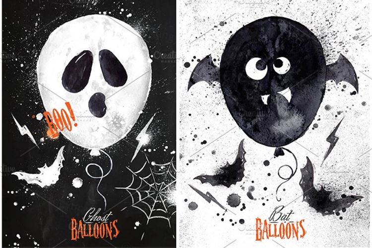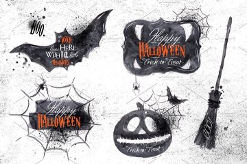 图穷联素材库 » 水彩涂鸦万圣节素材包 Halloween set