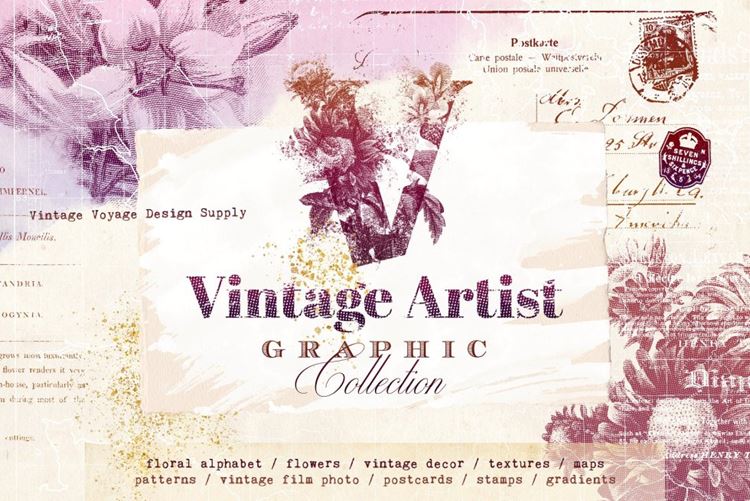 图穷联素材库 » 经典的复古花卉素材 Vintage Artist Graph