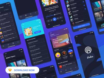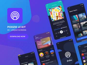 Podzie是一款现代移动UI工具包,提供构建优秀播客应用程序所需的所有组件。包括8个深色和浅色布局的样本屏幕。