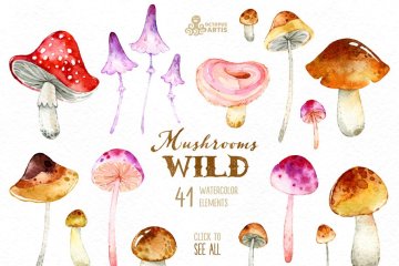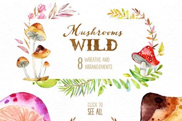 图穷联素材库 » 森林蘑菇图形套装 Wild Mushrooms. Fores