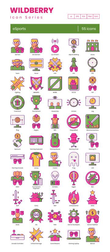 对电子竞技感兴趣?也许你想创建自己的团队,但是你需要一些东西来形象化你的想法?那么这55个电子竞技图标非常适合您!如果您正在开展业务,并且想要将自己的想法用于电子竞技锦标赛,计划或研讨会,请使用这些图标激励他人!真的,这些图标的使用限制取决于你的想象力!