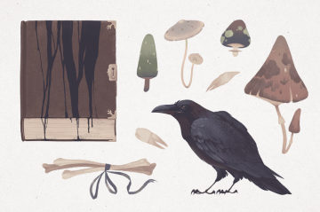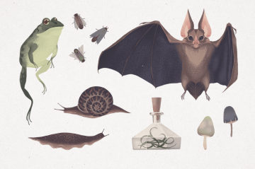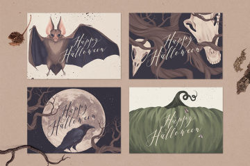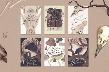 波西米亚诡异神秘的树木蝙蝠蜥蜴万圣节装饰插画合辑 Natur