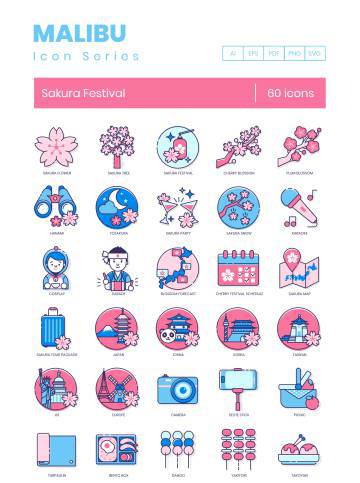 图穷联素材库 » 60个日本樱花节图标合集 Sakura Festival Icons | Mal