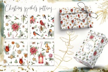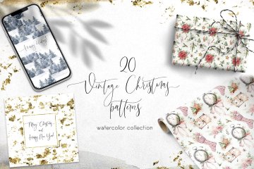 图穷联素材库 » 复古老式圣诞元素图案素材