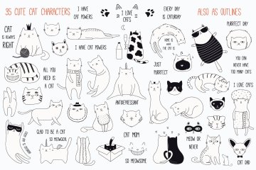 如果您经营猫类业务,则可以在品牌,包装或促销活动中使用这些简单但有效的涂鸦。