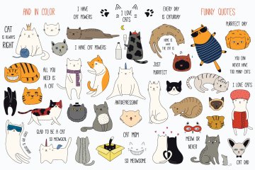 图穷联素材库 » 可爱的猫咪涂鸦剪贴画手账素材合集包 Cute Cat Doo