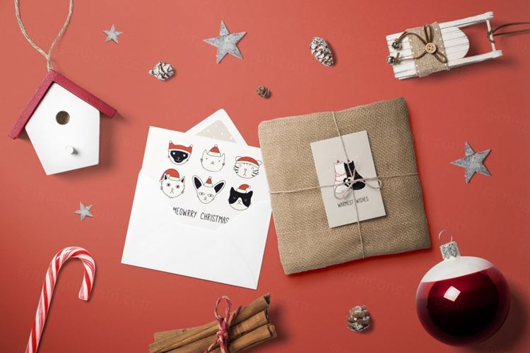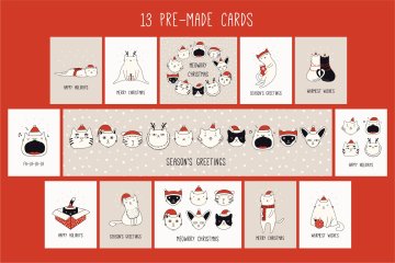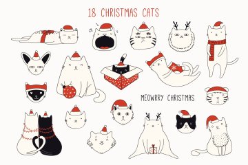 18个可爱的猫咪角色,都准备过圣诞节–(AI,EPS10,具有透明背景的单独的高分辨率PNG)