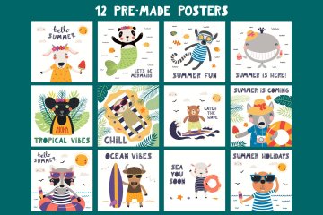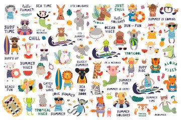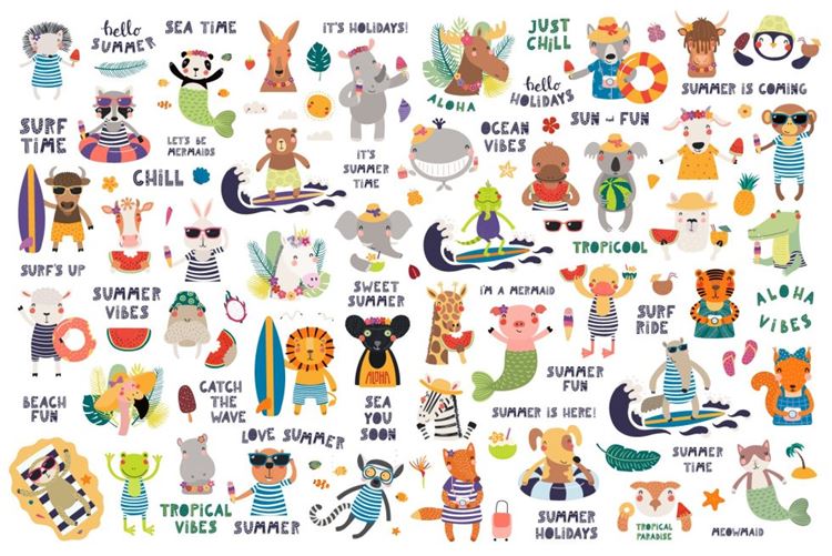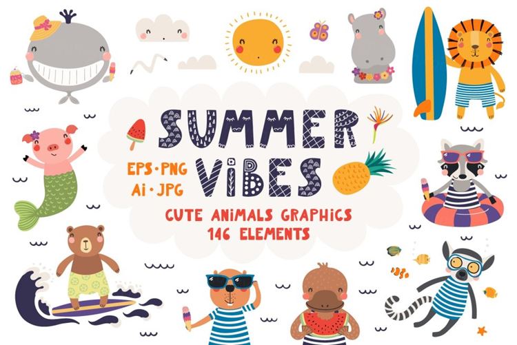 图穷联素材库 » 可爱的夏季小动物手绘插画素材合辑 Summer Vibes