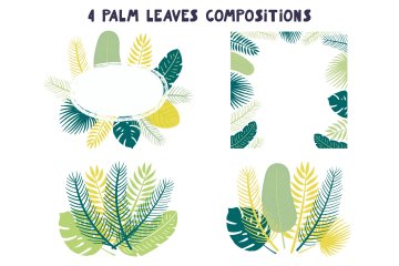 4种棕榈叶成分(AI,EPS10,透明背景的高分辨率PNG)