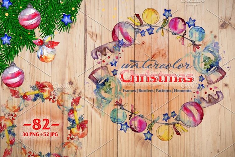 图穷联素材库 » 圣诞装饰球玩具水彩插画素材[PNG]