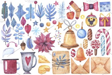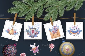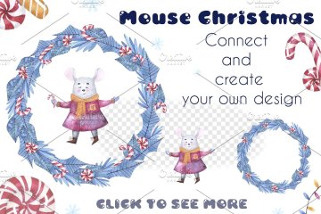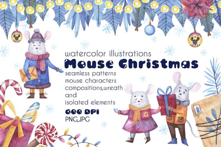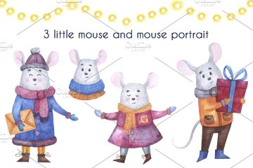 图穷联素材库 » 老鼠动物圣诞节水彩插画素材