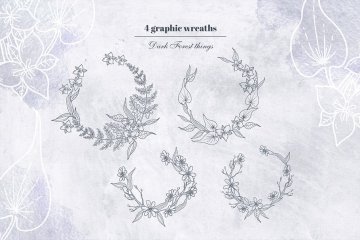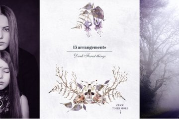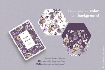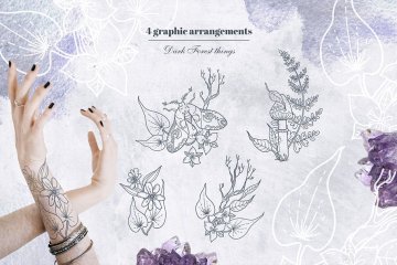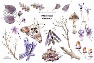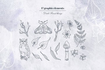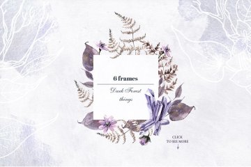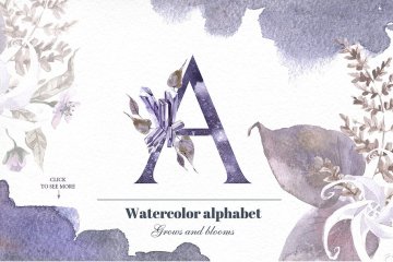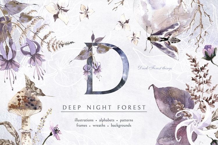 图穷联素材库 » 暮色森林水彩字母amp;amp;花卉元素插画套装