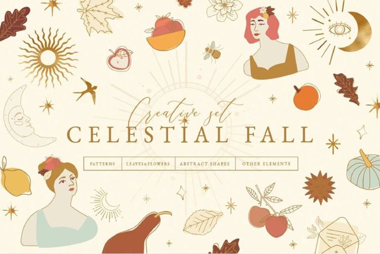 图穷联素材库 » 丰富多彩的秋季元素抽象形状插画图案素材合集