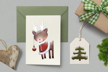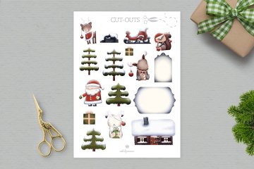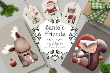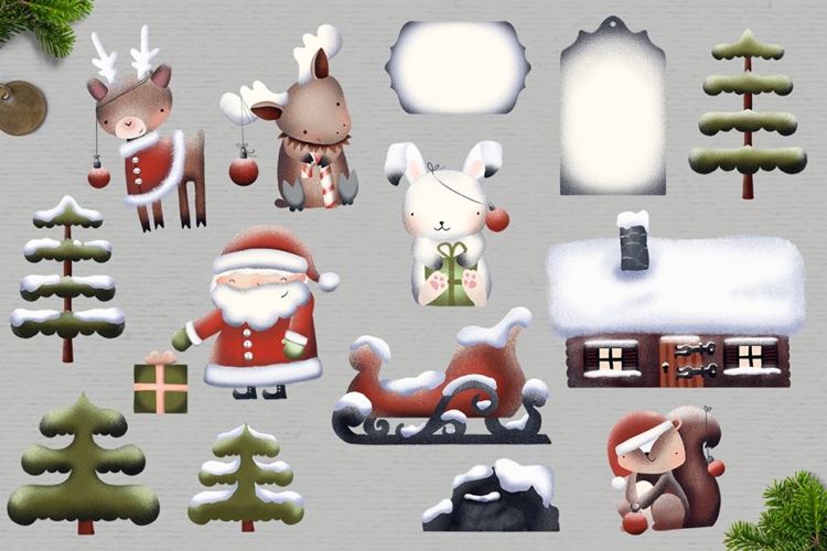图穷联素材库 » 圣诞林地动物水彩剪贴画素材