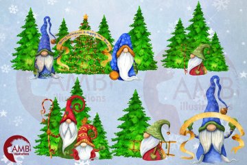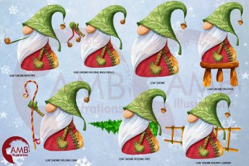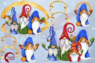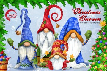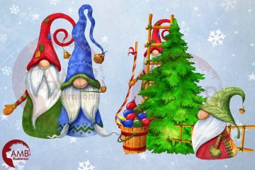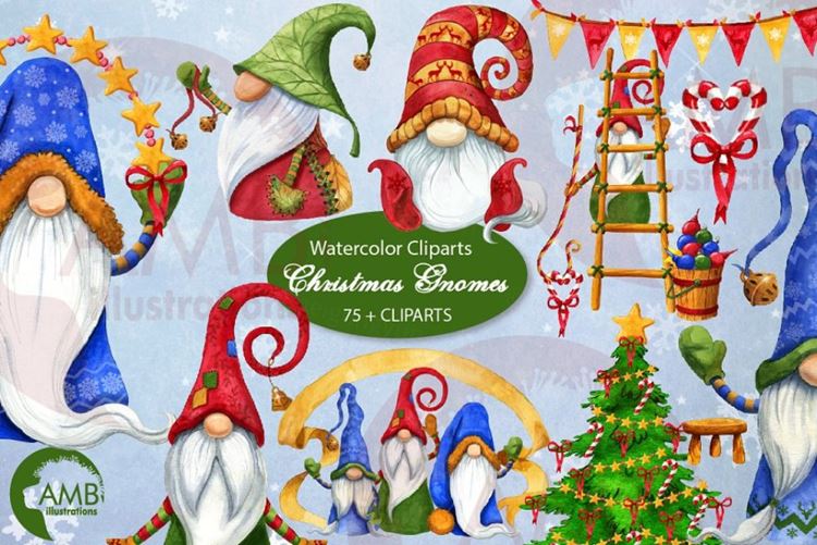 图穷联素材库 » 圣诞地精侏儒水彩插画素材