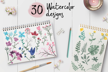 图穷联素材库 » 植物花束水彩元素设计插画图案素材