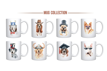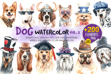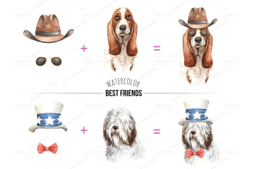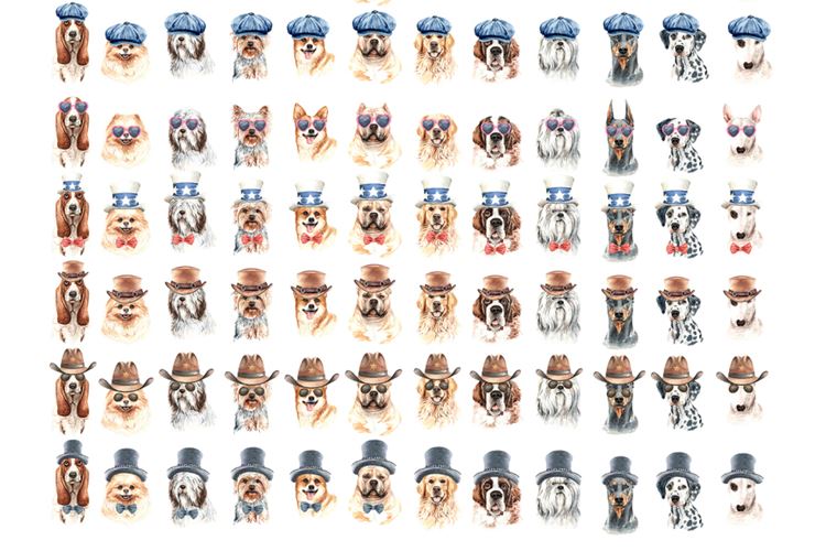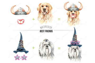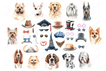 图穷联素材库 » 手工绘制的小狗动物水彩剪贴画素材合集