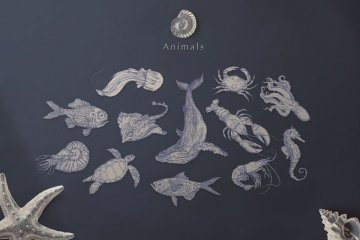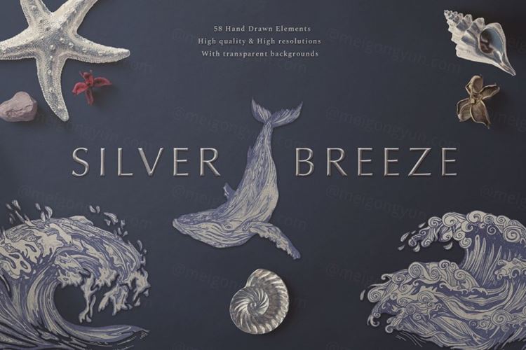 图穷联素材库 » 银色海洋生物手绘元素插画合集