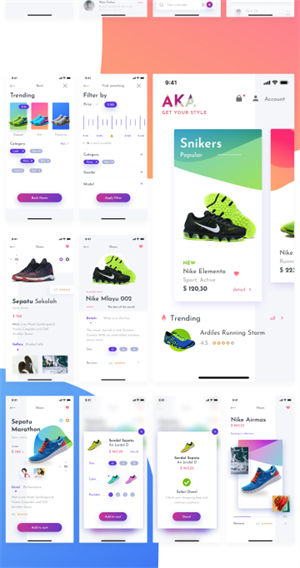 电子商务鞋子网店APP设计工具包 AKA UI Kit
