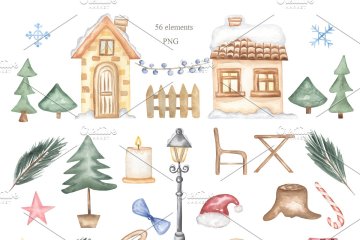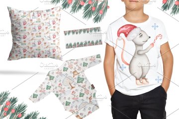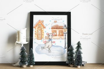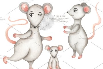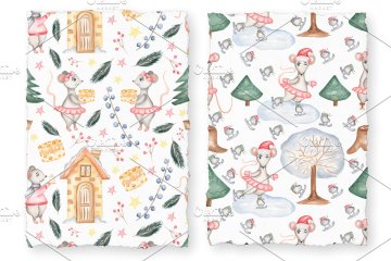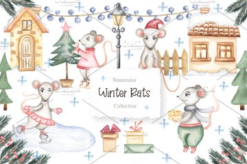 图穷联素材库 » 冬季圣诞水彩老鼠插画素材合集