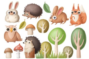 图穷联素材库 » 可爱的森林小动物卡通插画素材集