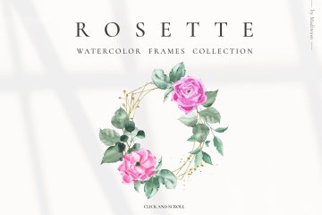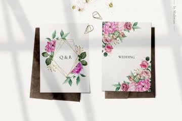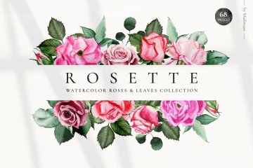 水彩玫瑰和绿叶剪贴画婚礼素材