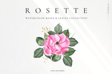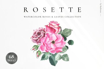 图穷联素材库 » 水彩玫瑰和绿叶剪贴画婚礼素材