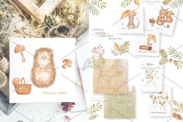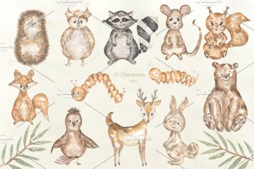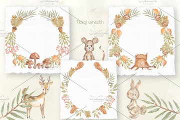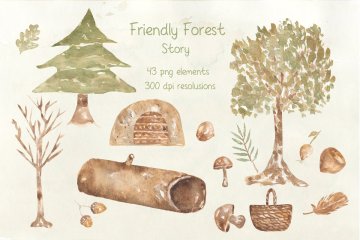 图穷联素材库 » 森林故事系列手绘水彩插画素材