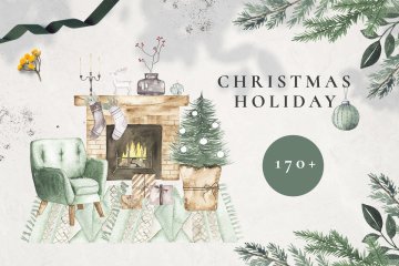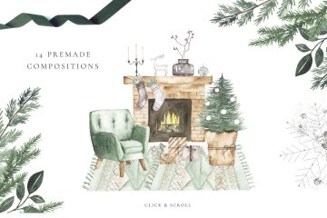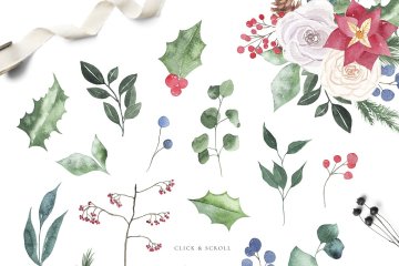 图穷联素材库 » 冬季假期圣诞系列水彩插画合集