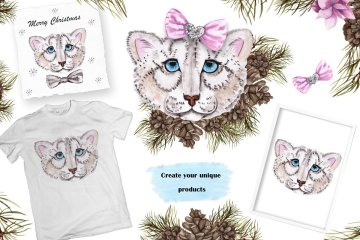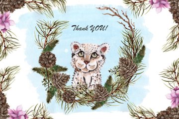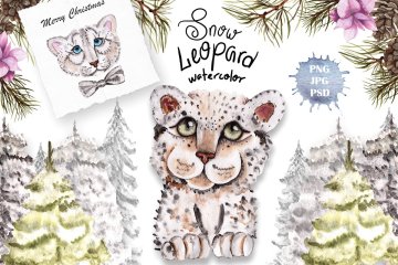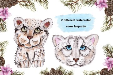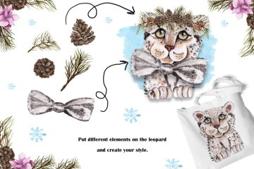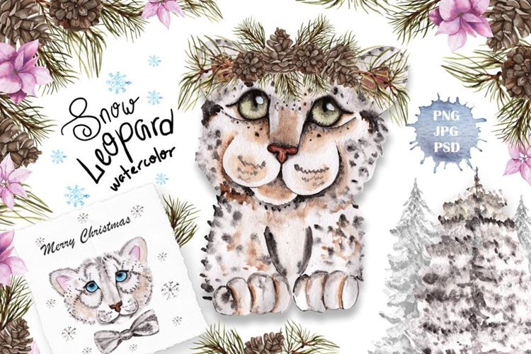 图穷联素材库 » 可爱的雪豹动物水彩卡通插画合集