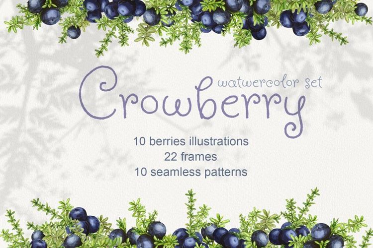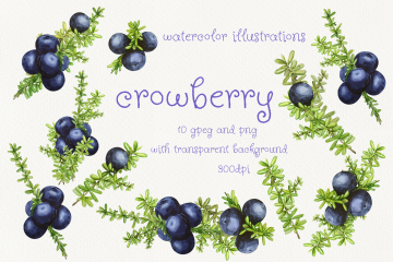 图穷联素材库 » 岩高兰浆果水彩插画素材合集